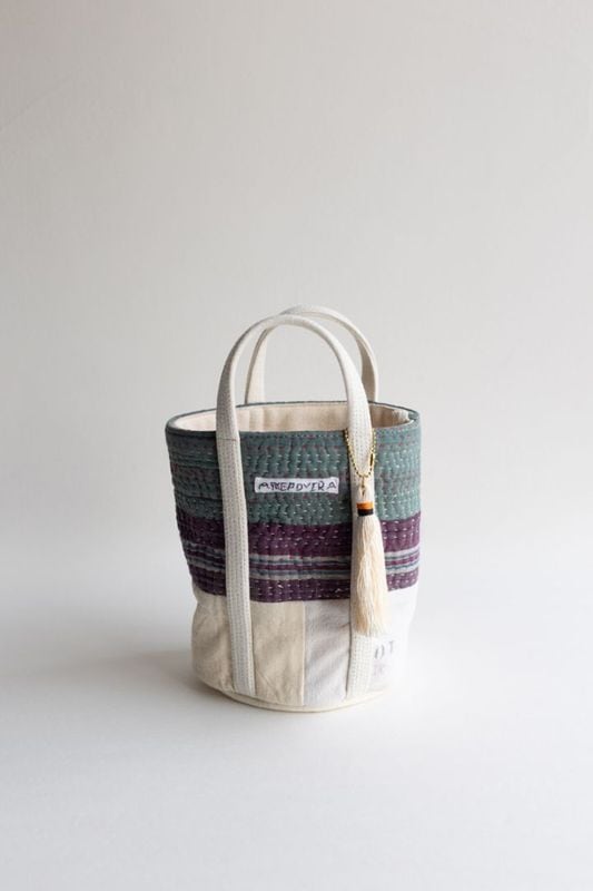 - ARTE POVERA アルテポーヴェラ | インドキルトラリー & フランスシーツMIX NEW ラウンドBAG (S) B
