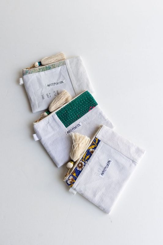 - ARTE POVERA アルテポーヴェラ | インドキルトラリー & フランスシーツ MIXポーチ (S)
