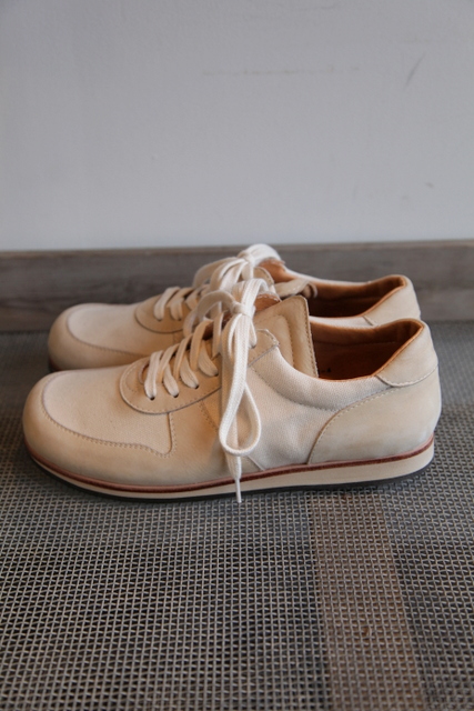 パラフィンキャンバスとレザーを組み合わせたアッパーソールはマッケイ製法、