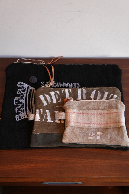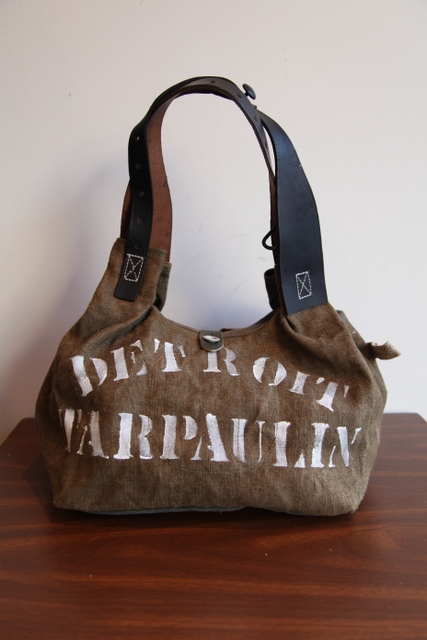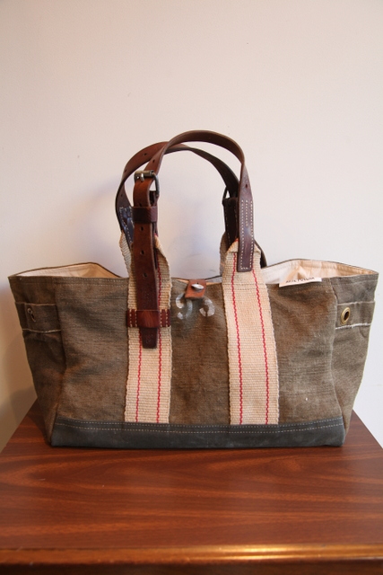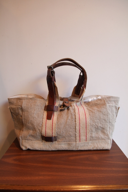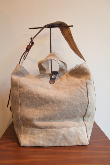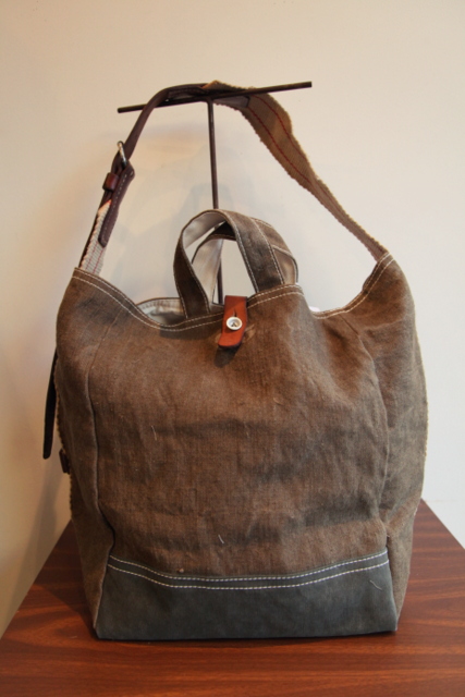 古いチェコのダッフルバッグの麻素材をリメイクし