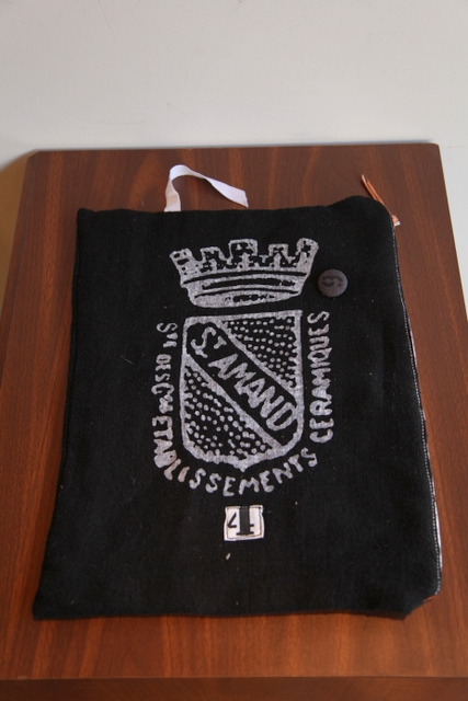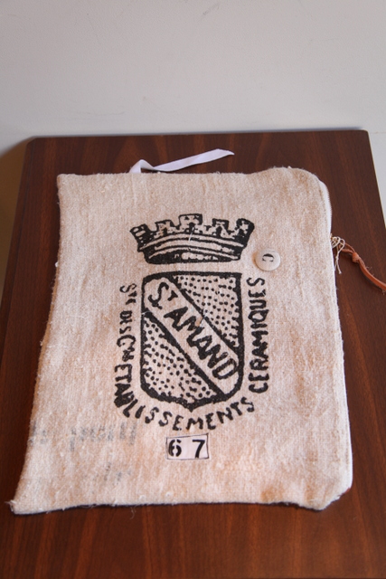 ブレスレットと同じく古いプレートをアソートで縫いつけられています。