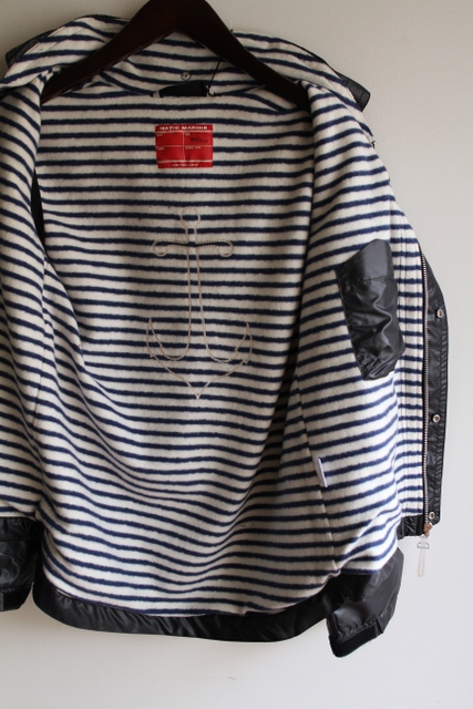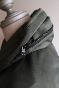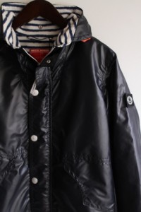 まずは光沢感のあるポリエステル素材に裏ボーダーがアクセントのZIPアウター。