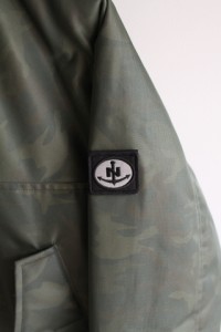 取り外しのできる左腕のエンブレムや、ZIP部分の引き手はリフレクターです。
