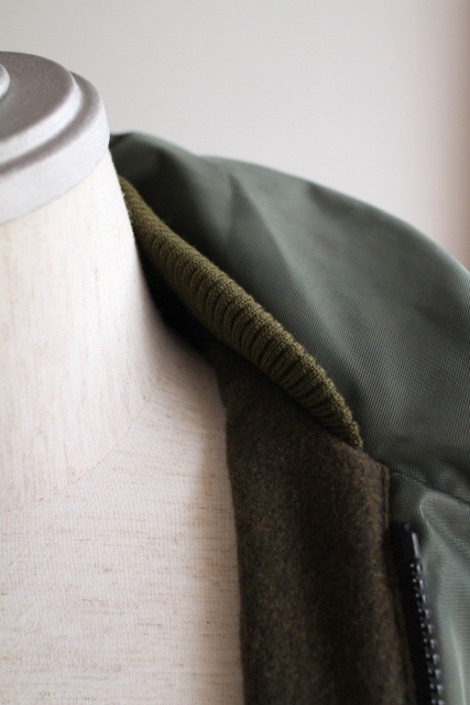 中綿を入れ、カーキのブランケット素材を裏地にしているため保温性も優れたJKTです。