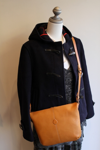 シンプルで、スタイルを選ばないレザーショルダーです。