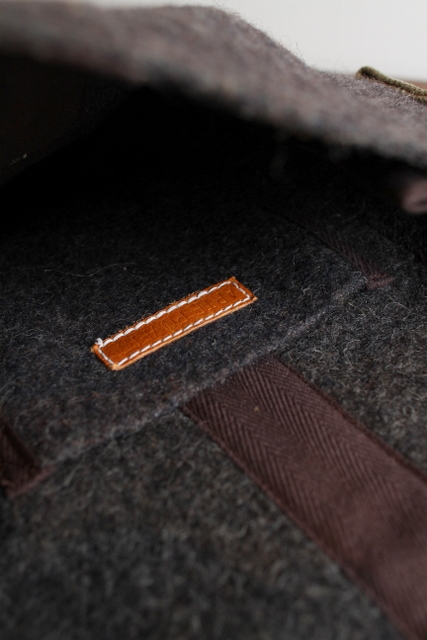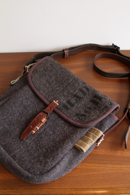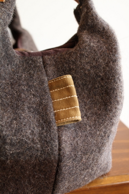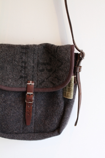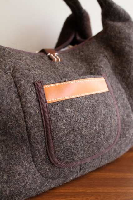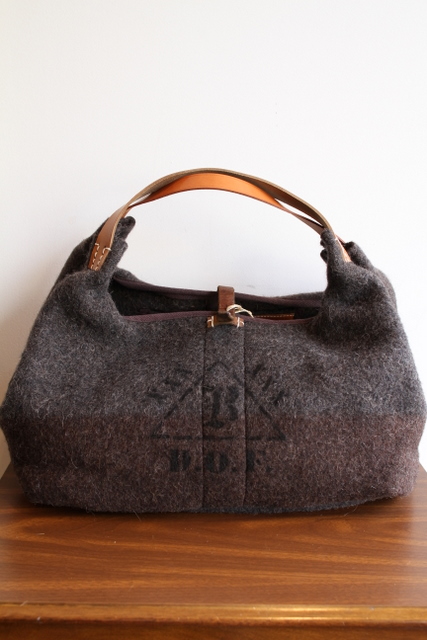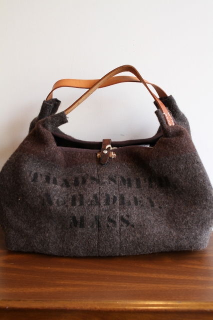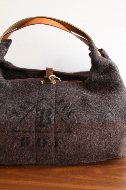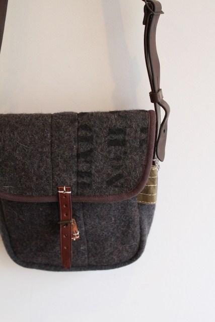 古いグレーのブランケット素材をベースにリメイクした