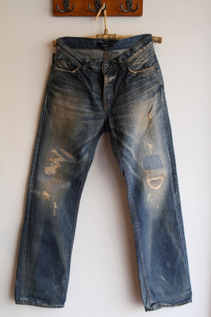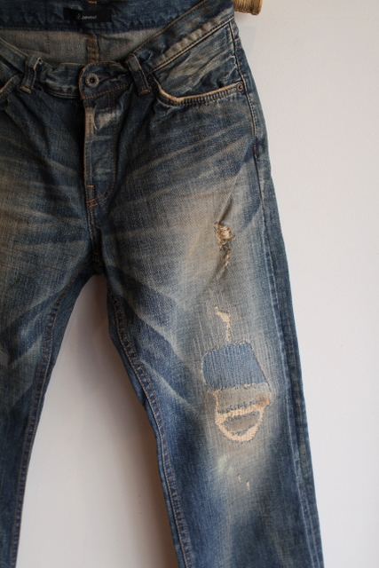リペアしながら愛着をもって長年穿きこんできたかなような雰囲気を最初から表現。