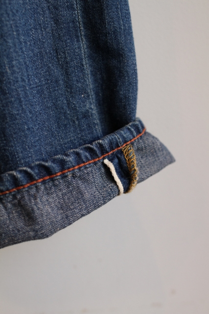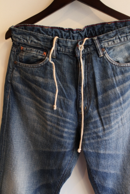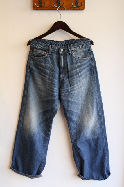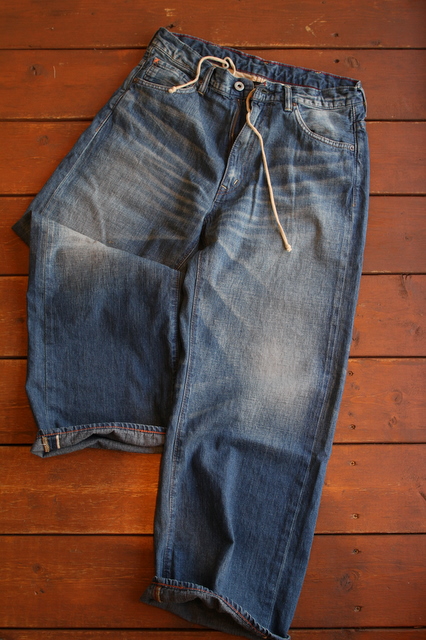 もも周りは少しすっきりして、裾に向かってテーパードが無くストンとおちるので、スレンダーなシルエット。