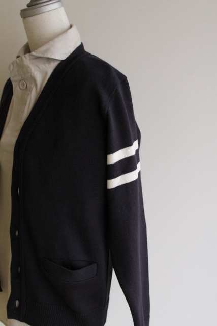 こちらは、袖の2本ラインがいい感じのスクールカーディガン。