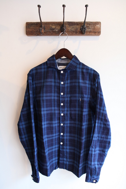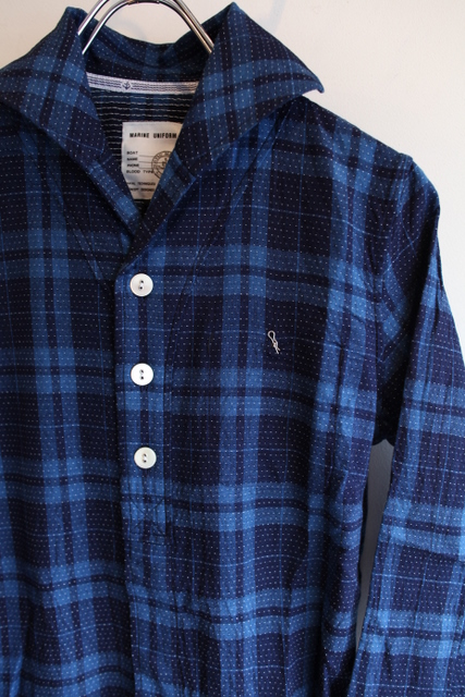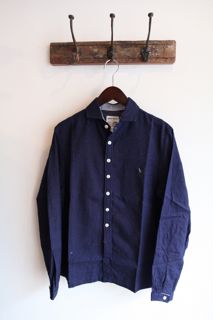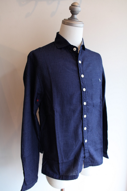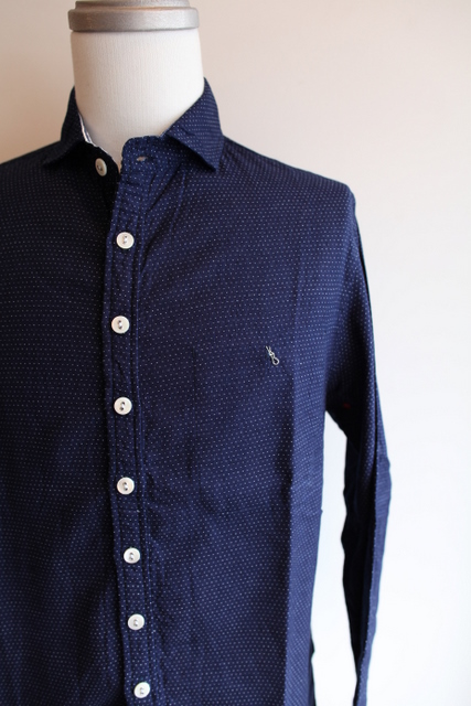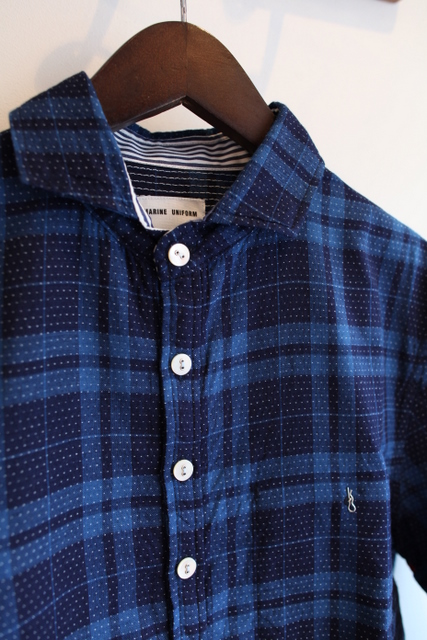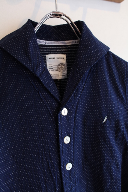 Short Wide Collar インディゴサシコドット Marine Shirts