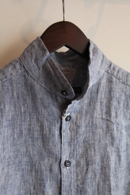 シャツは甘い織りのリネンシャンブレー素材を使用して
